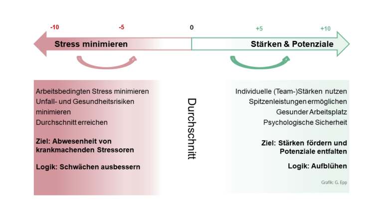 Vorteil 2: Zudem wird der Fokus auf die Wichtigkeit von gesundheitsförderlichen Verhalten gelegt. Die Grundidee kommt aus der Positiven Psychologie und hebt vor allem jene Prozesse und Rituale in der alltäglichen Arbeit, die bereits gut funktionieren, hervor. Hierfür werden die PERMA-Ergebnisse aus dem Onlinefragebogen vorgestellt. Weiters wird zu den wichtigsten ein bis zwei Punkten eine Intervention für den beruflichen Alltag vorgestellt.